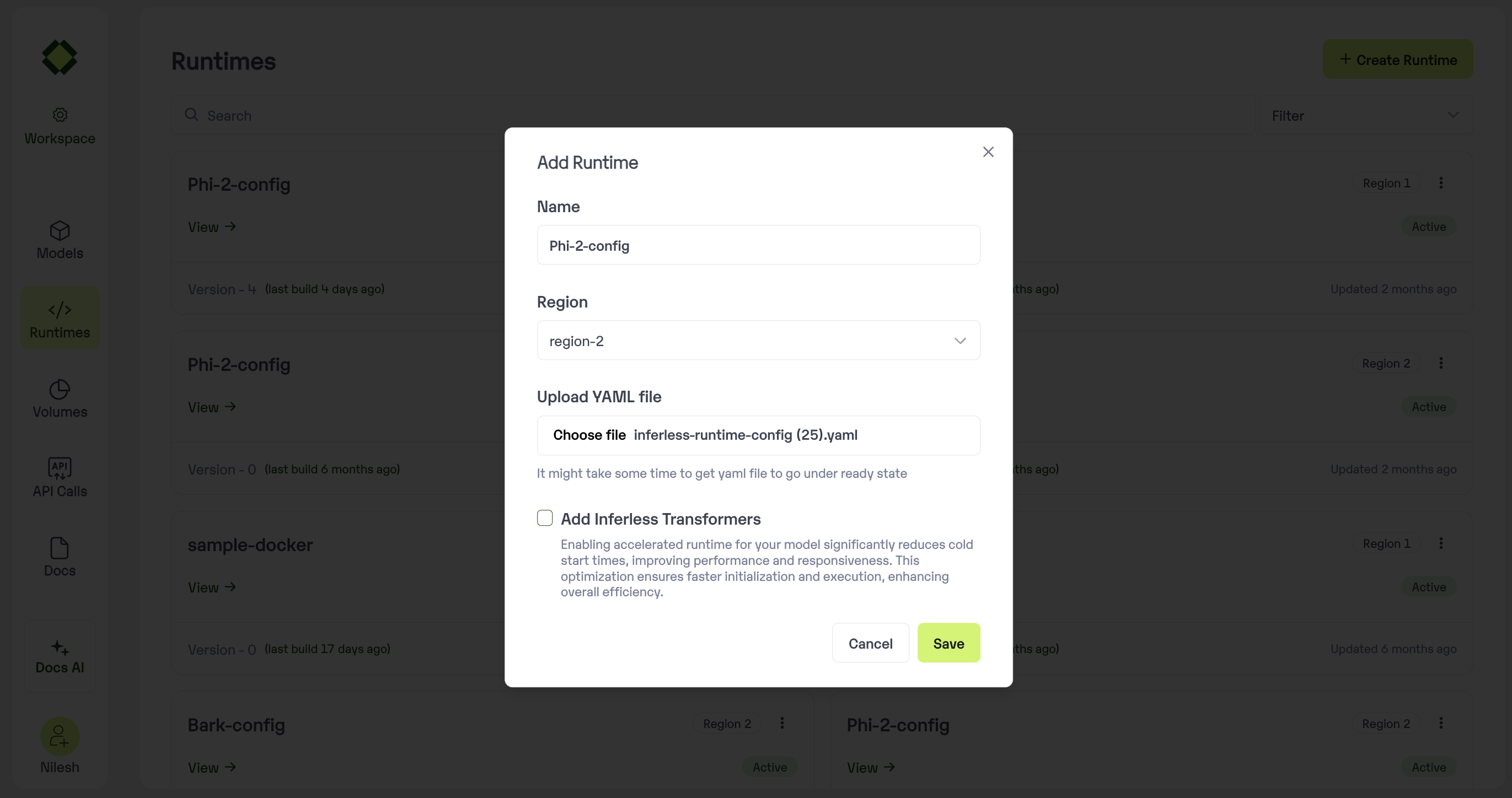 Method A: Create a new Runtime using Inferless Platform
