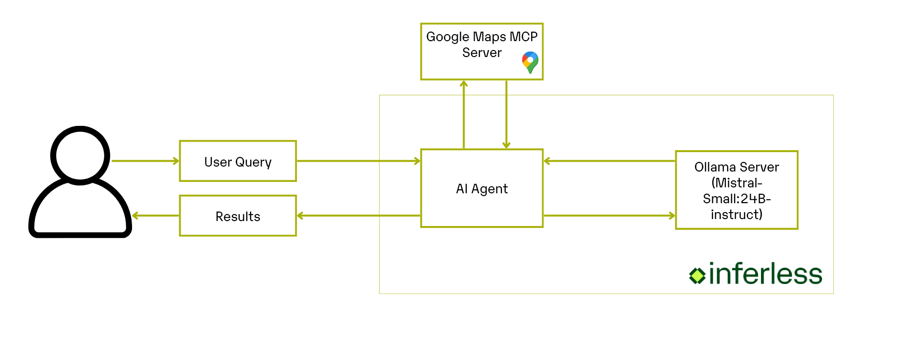 @modelcontextprotocol/server-google-maps) over stdio. - OllamaManager: Manages the lifecycle of your local Ollama LLM server: start, readiness checks and model pulls.