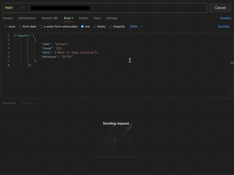 def infer: This function gets called for every request that you send. Here you can define all the steps that are required for the inference. You can also pass custom values for inference and pass it throughinputs(dict)parameter. -