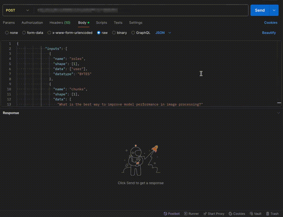 def infer: This function gets called for every request that you send. Here you can define all the steps that are required for the inference. You can also pass custom values for inference and pass it throughinputs(dict)parameter. -