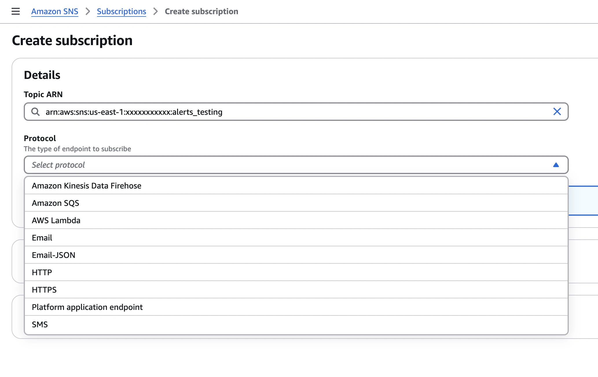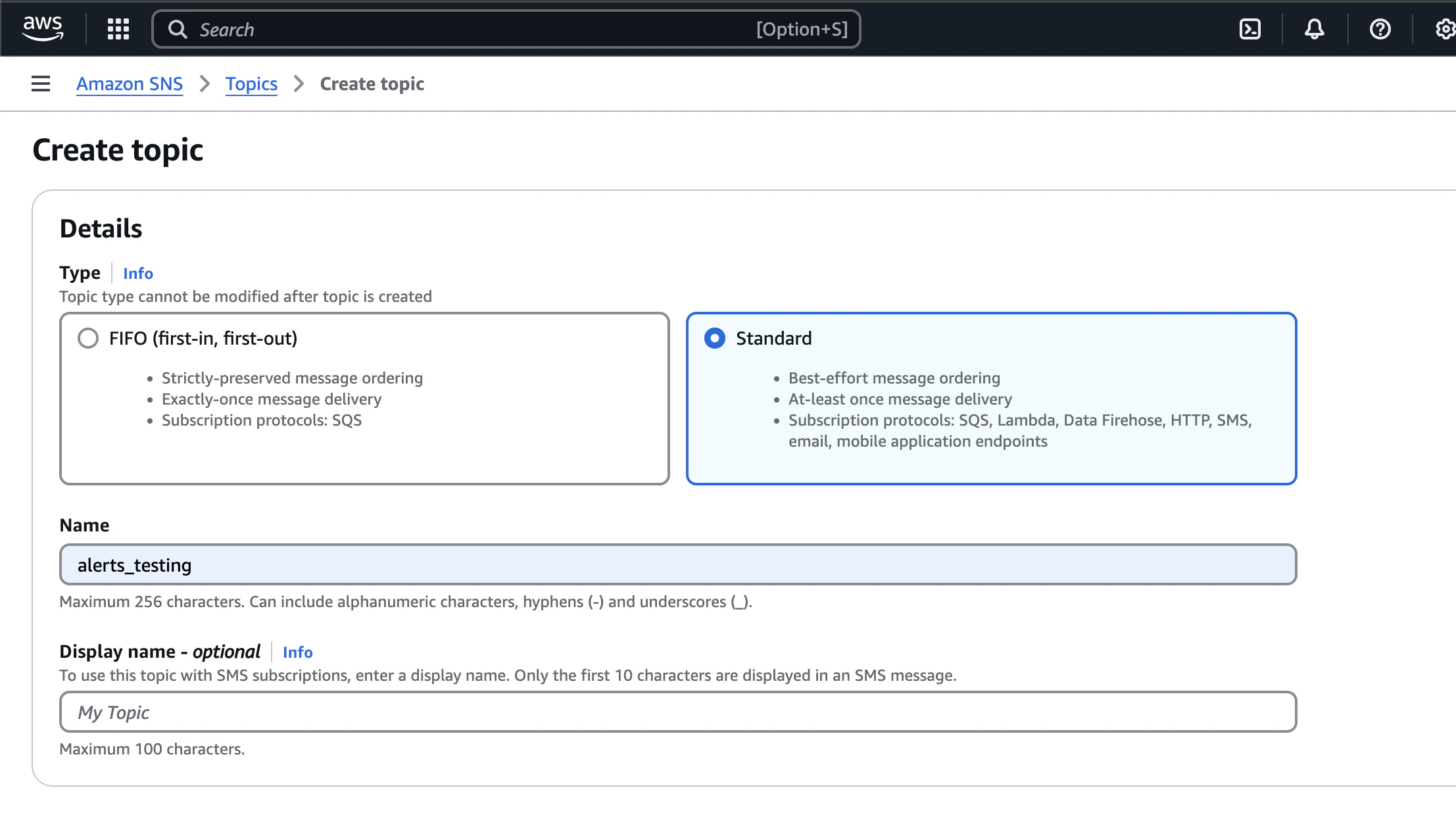 Create a new Standard SNS topic in your AWS account.