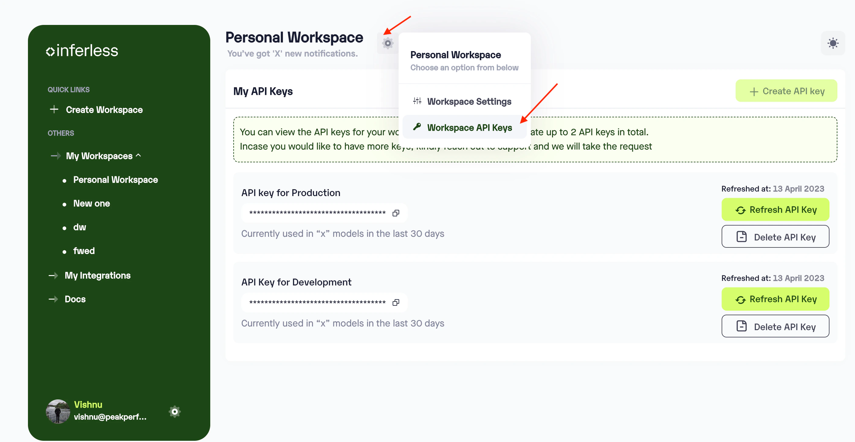 - Click on “Workspace API keys”