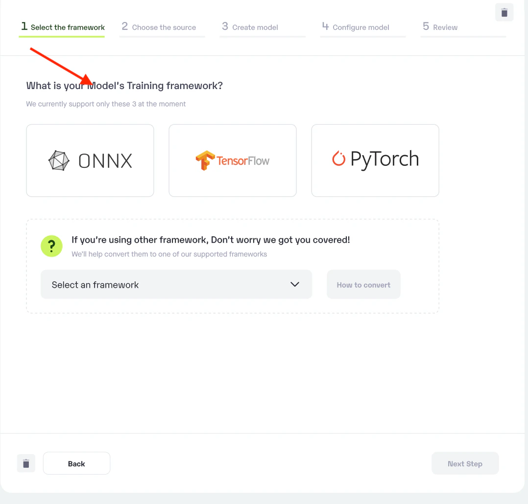 Step 1: Choose the framework on which your model was trained.