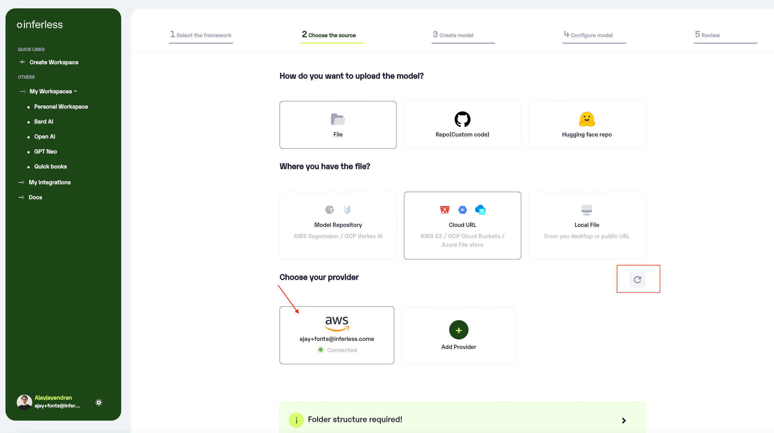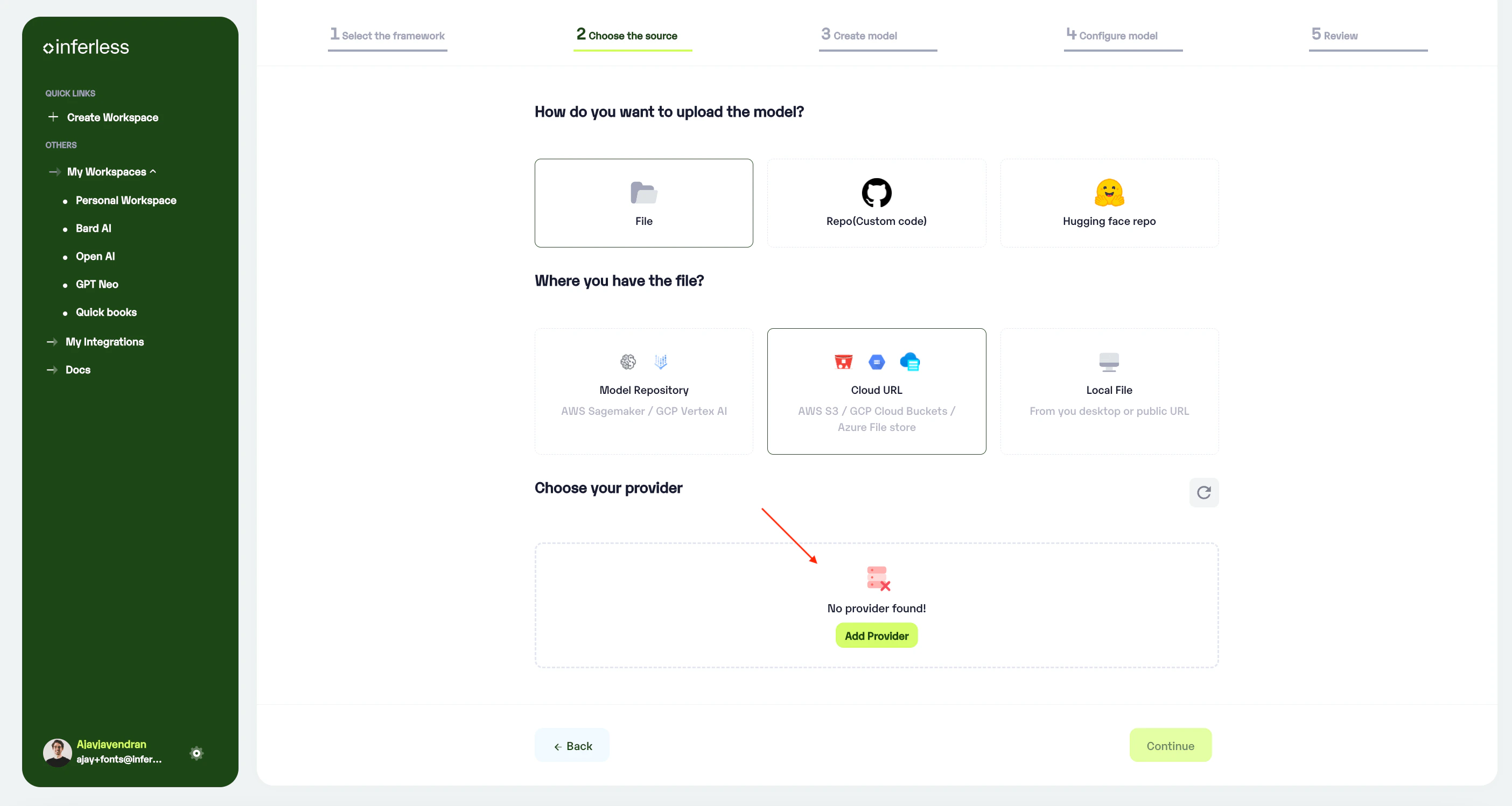 - If you are using Inferless for the first time and have not added any providers before, click on the