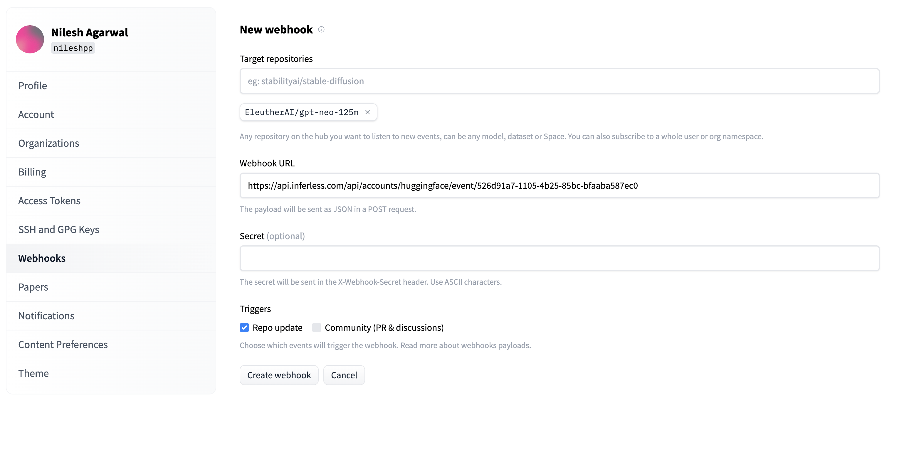 Skip to main contentSteps to enable Webhook in Hugging Face